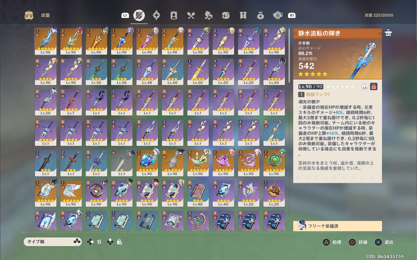 申鶴(限定星5) 2凸 Lv90 好10 9・9・9