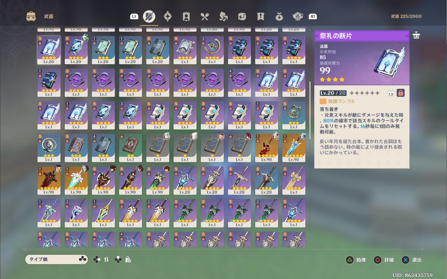 祭礼の断片(星4) 完凸4本。5本目無凸