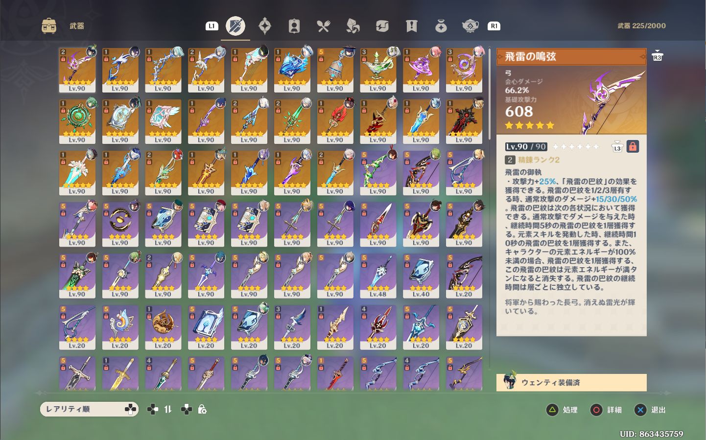 雷電将軍(限定星5) 2凸 Lv90 好10 9・10・10