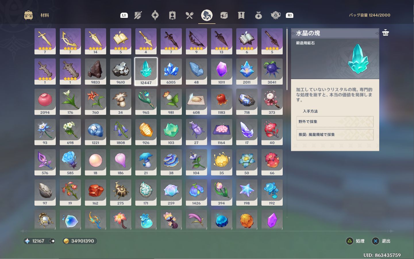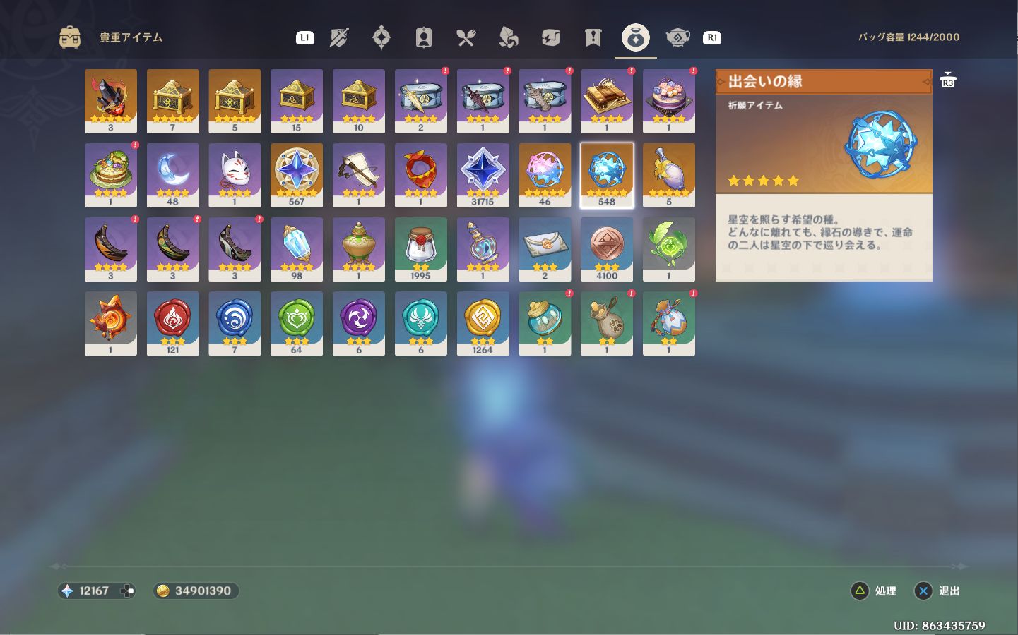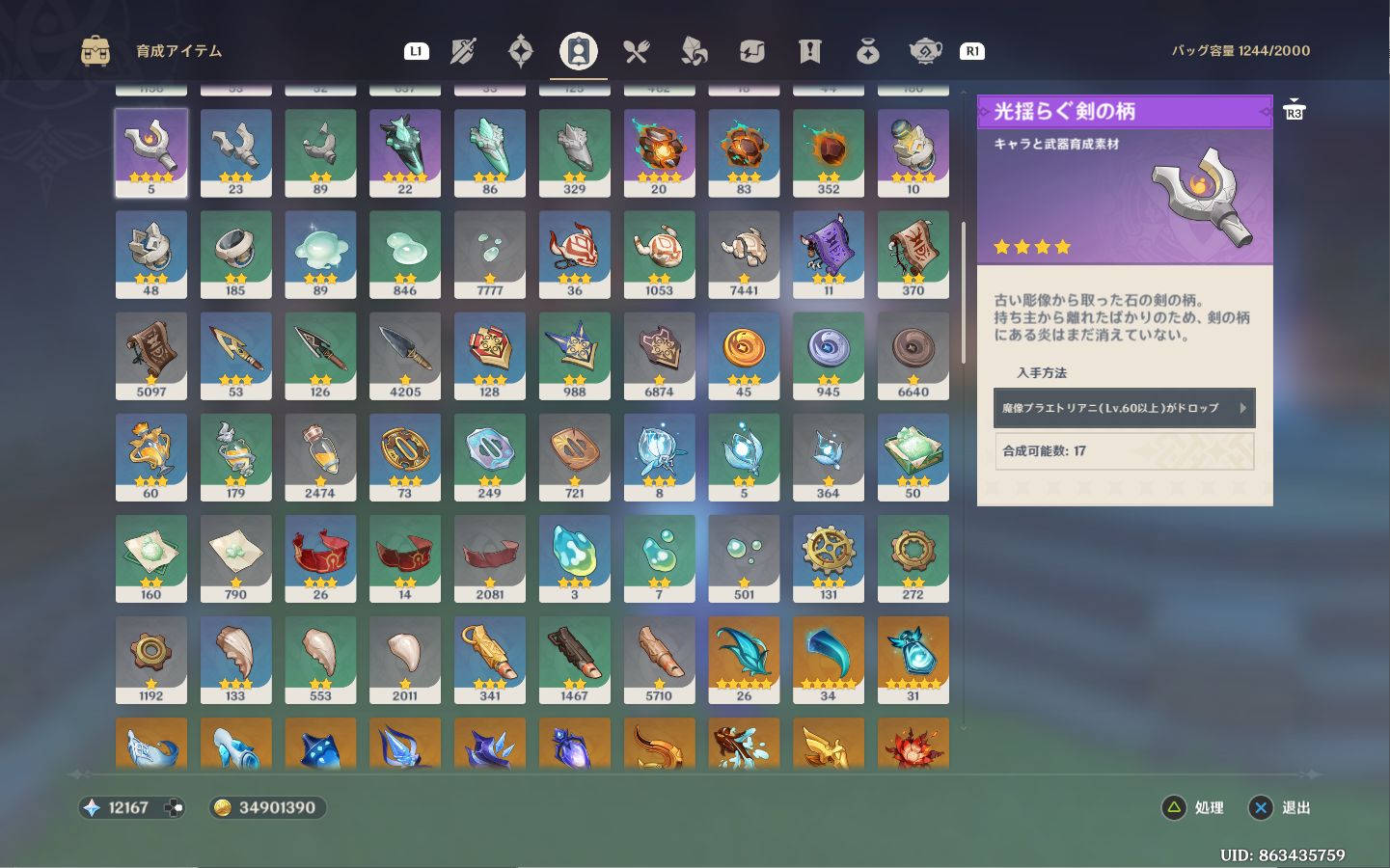 以後、プレイデータとして現時点での武器、アイテム等のキャプ。