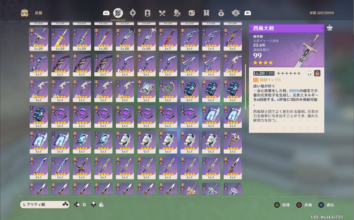 祭礼の大剣(星4) 完凸5本。6本目3凸