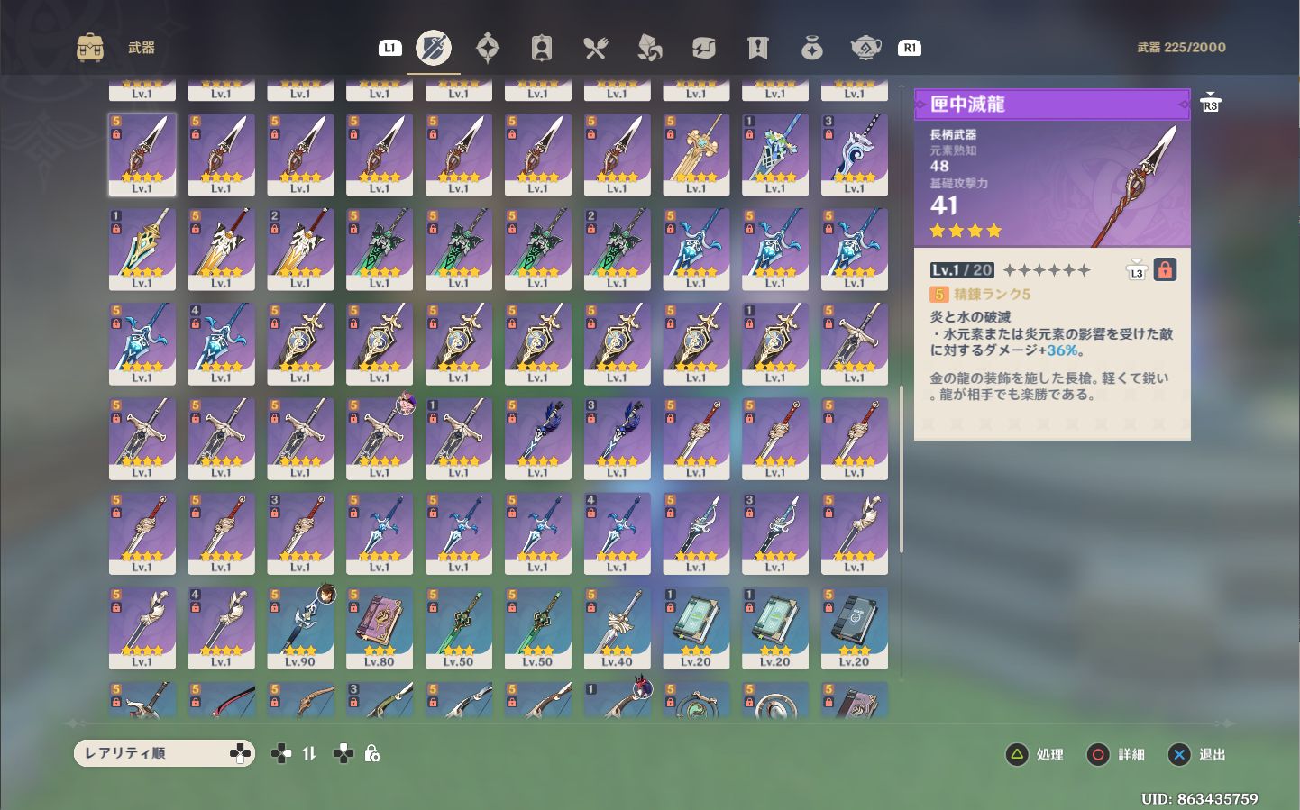 ─所持武器リスト。レアリティ、所持数と凸状況も記載(星1と星2は凸れないので所持数のみ)─