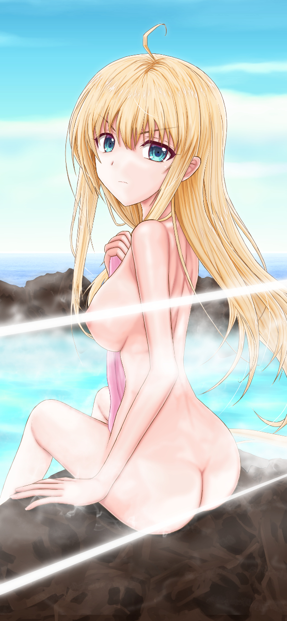 オリジナルキャラの聖女、海に臨む露天風呂にて。